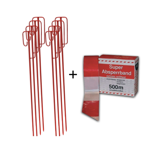 Diese Absperrset besteht aus 6x Absperrleinenhalter rot und 500m Absperrband rot weiß.